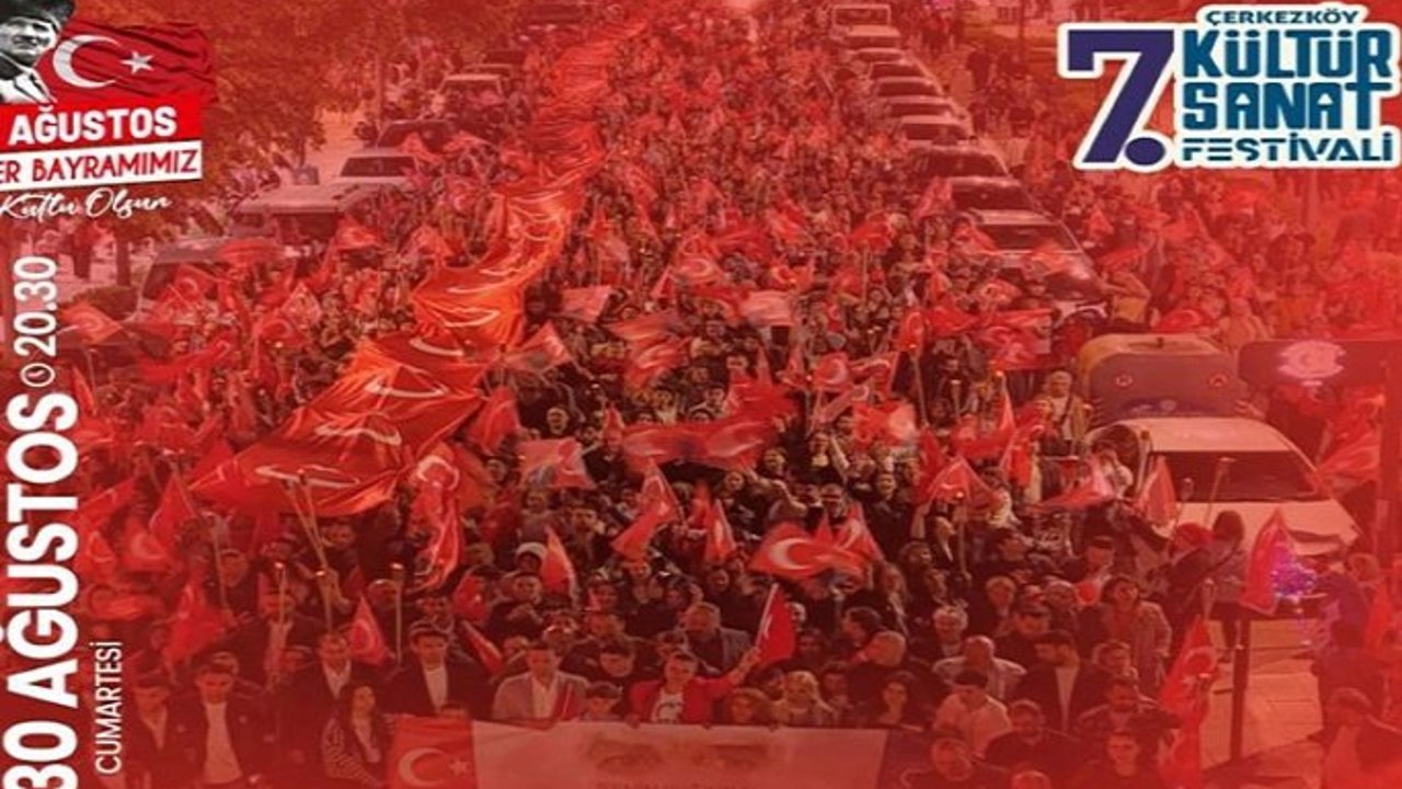 Çerkezköy Belediyesi 7. Kültür ve Sanat Festivali etkinliklerinin 30 Ağustos Cumartesi günü 13.00-17.00 saatleri arasında Atatürk Kültür Merkezi’nde çocuk atölyeleri ile devam edeceğini sözlerine ekleyen Akay, “Streetball Turnuvası’nın 2’nci gününde de 17.00-22.00 saatleri arasında birbirinden çekişmeli karşılaşmalar oynanacak. Saat 20.00’da Cumhuriyet Meydanımızda binlerce hemşerimiz ile birlikte oluşturacağımız kortej ile ellerimizde meşaleler ve bayraklarla Kapalı Pazar Yeri konser alanına yürüyeceğiz. Ardından saat 21.00’da ünlü müzik grubu Pinhani’nin muhteşem konseri eşliğinde tüm hemşerilerimiz ile birlikte 30 Ağustos Zafer Bayramımızı büyük bir coşkuyla kutlayacağız” dedi.