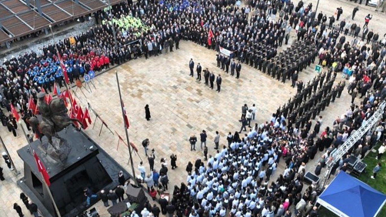 Türkiye Cumhuriyeti’nin kurucusu Ulu Önder Mustafa Kemal Atatürk’ün aramızdan ayrılışının 87’nci yıl dönümü dolayısıyla düzenlenen anma programı Cumhuriyet Meydanı’nda bulunan Atatürk Anıtı’na çelenklerin sunulması, 2 dakikalık saygı duruşunda bulunulması ve İstiklal Marşımızın okunması ile başladı.