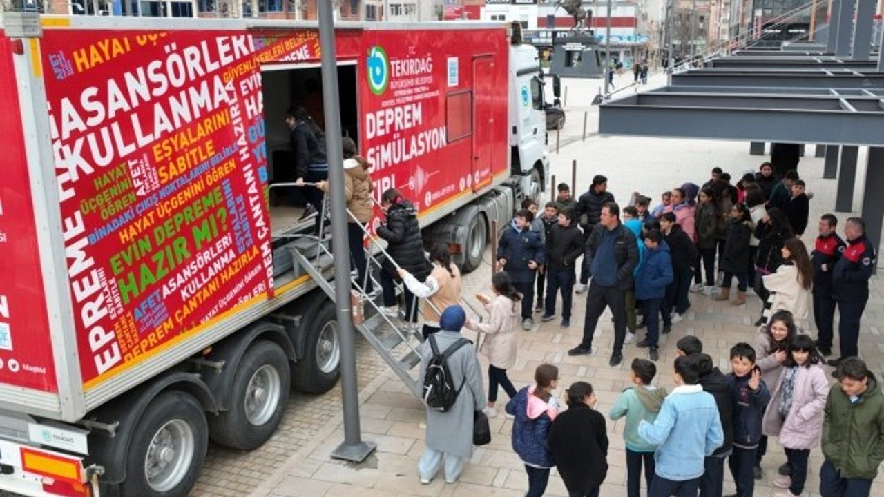 Deprem Simülasyon Tırının ülke genelinde dolaşarak çocuklara ve yetişkinlere deprem anında yapılması gerekenler hakkında eğitimler verdiğini belirten yetkililer, “TBB Deprem Risk Yönetimi ve Kentsel İyileştirme Daire Başkanlığı’na ait Deprem Simülasyon Tırı, Çerkezköy’e geldi. Öğrencilerimizi ve isteyen vatandaşlarımızı Deprem Simülasyon Tırımıza alarak deprem konusunda bilgilendirdik” açıklamalarında bulundu.