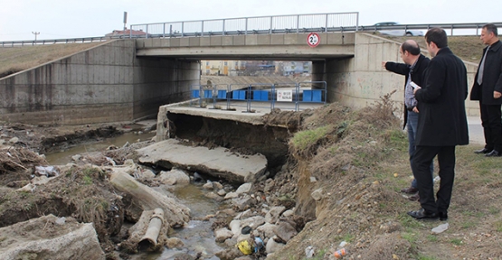 Alt geçitte bulunan dere yatağındaki kanalizasyon hatlarının yağmur sularından zarar görmesi nedeni ile köprü altının tıkandığını ve göçük yaşandığını belirten Çerkezköy Belediye Başkanı Vahap Akay, “Dere yatağındaki göçükten dolayı oluşan kaymalar ve kaya parçaları temizlenerek, dere yatağı açılacak ve kayan zemin doldurulacak” dedi.