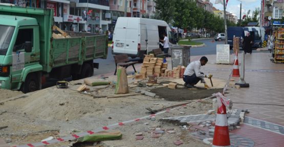 TESKİ çalışanları yaklaşık 1 buçuk ay sonra bölgedeki kaldırımın renk ve desenine uygun kaldırım taşlarını bularak düzenlemelere başladılar. Başoğlu Şarküteri ve Deniz Bank arasında açık kalan kaldırım, motifleri bozulmadan taşlarla döşenmeye başladı.