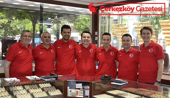 Çerkezköy Sıla Kuyumculuk çalışanları, Euro 2016 karşılaşmalarında D Grubunda mücadele edecek olan A Milli takımımıza giydikleri ay yıldızlı tişörtlerle destek verecek