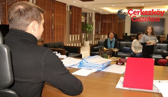 Çerkezköy Belediye Başkanı Vahap Akay, Çerkezköy Kent Konseyi Çocuk Meclisi Başkanı Emine Demir ve yönetim kurulu üyelerini makamında ağırladı. Çerkezköy Kent Konseyi Çocuk Meclisi olarak çocukların daha iyi şartlarda yetişmeleri adına projeler üretmeye çalıştıklarını belirten Çocuk Meclisi Başkanı Emine Demir, Başkan Akay’a da desteklerinden dolayı teşekkür etti.