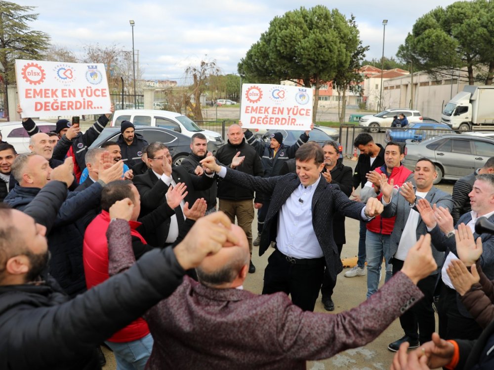 İmza altına alınan Toplu İş Sözleşmesi ile Çerkezköy Belediyesi’nde en düşük işçi maaşının net 30 bin TL olarak belirlendiğini kaydeden Akay, “İkramiye tutarını ilk yıl için 52, ikinci ve üçüncü yıl için de 60 güne çıkardık. Her yıl yılbaşı, Ramazan ve Kurban Bayramlarında çalışanlarımıza verdiğimiz erzak yardımlarını da artırarak devam ettiriyoruz. Bütün haklar ilave edildiğinde işçilerimizin maaşlarına yaklaşık yüzde 130 oranında zam yapılmış oldu. İlk yıl ikinci 6 ay için enflasyon farkı artı yüzde 5 refah payı oranında zam yapılacak. İkinci yıl da 6 aylık enflasyon farkı artı yüzde 5 refah payı; ikinci 6 ay için enflasyon farkı artı yüzde 5 refah payı oranında zam yapılacak. Üçüncü yıl ise ilk 6 ay için enflasyon farkı artı yüzde 7,5 refah payı, ikinci 6 ay için de enflasyon farkı artı yüzde 7,5 refah payı oranında zam yapılacak. Sosyal yardım oranlarını da artırdık. Tarafların taleplerini ve tekliflerini ortak paydada buluşturmak için büyük gayret gösterdik. Önümüzdeki 3 yılı kapsayacak bu sözleşmenin işçilerimiz ve aileleri için hayırlı olmasını temenni ediyorum” ifadelerini kullandı.