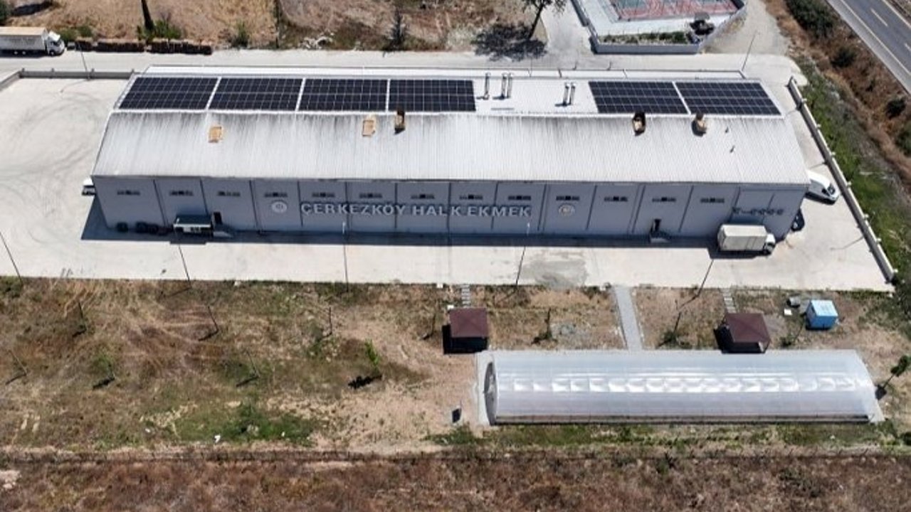 Çerkezköy Belediyesi İklim ve Sıfır Atık Müdürlüğü tarafından hayata geçirilen All in Green projesi kapsamında Halk Ekmek Fabrikası çatısına güneş enerji santrali kurulduğunu belirten Çerkezköy Belediye Başkanı Vahap Akay, “Güneşle tasarrufa, doğayla dönüşüme devam ediyoruz! IPA projemiz All in Green kapsamında, yeşil uygulamalarla dönüştürdüğümüz alanlarımızdan biri olan Halk Ekmek Fabrikamızın çatısına Güneş Enerjisi Santrali (GES) kurduk” dedi.
