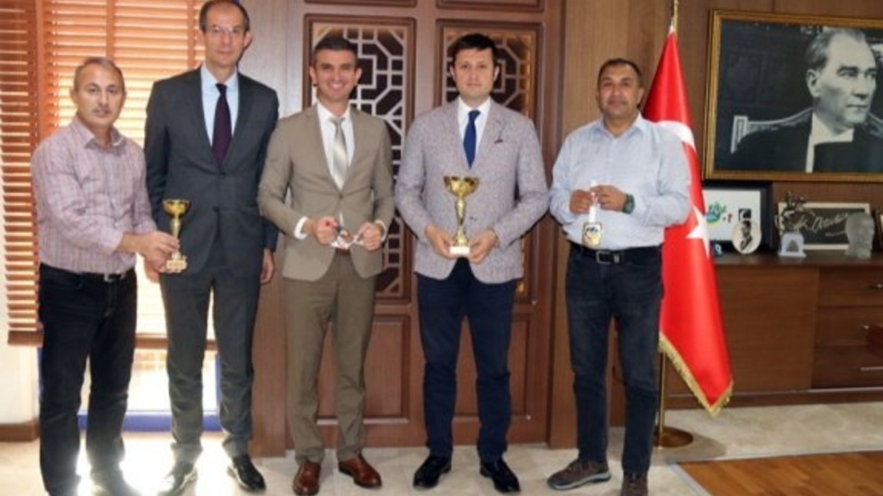 Başkan Akay, Çerkezköy Belediye Gençlik Spor Kulübü Başkanı Mehmet Şahin Yılmaz ve Karate Takımı sporcularından Murat Kıroğlu’nu makamında ağırladı. Ziyarette Belediye Başkan Yardımcımı Nedim Yılancı da hazır bulundu. Çerkezköy Belediye Gençlik Spor Kulübü olarak 1 – 3 Kasım tarihleri arasında Makedonya’nın başkenti Üsküp’te düzenlenen 11. Shotokan Karate Şampiyonası’na katıldıklarını belirten Murat Kıroğlu, “Şampiyonadan 2 birincilik ve 5 üçüncülük elde ederek ülkemize döndük” dedi.