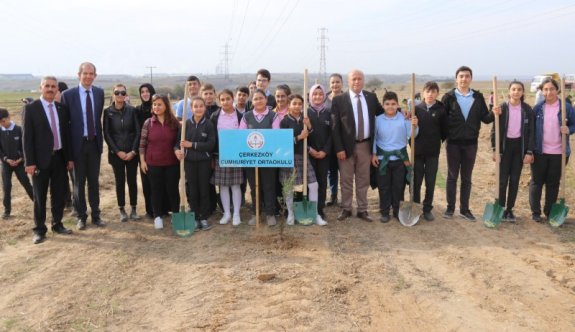 Bugün de daha yeşil bir doğa ve Çerkezköy için geleceğimizin teminatı çocuklarımız ile birlikte 1000 adet fidanı Veliköy Mahallemizde toprak ile buluşturduk. Öğrencilerimiz ile birlikte toprakla buluşturduğumuz fidanların bakımı ve korunması Çerkezköy Belediyesi tarafından yapılacak. İnşallah şuanda boş olan alan 10 yıl sonra içerisinde bu fidanların boy verdiği yemyeşil bir alan olacak” ifadelerini kullandı.