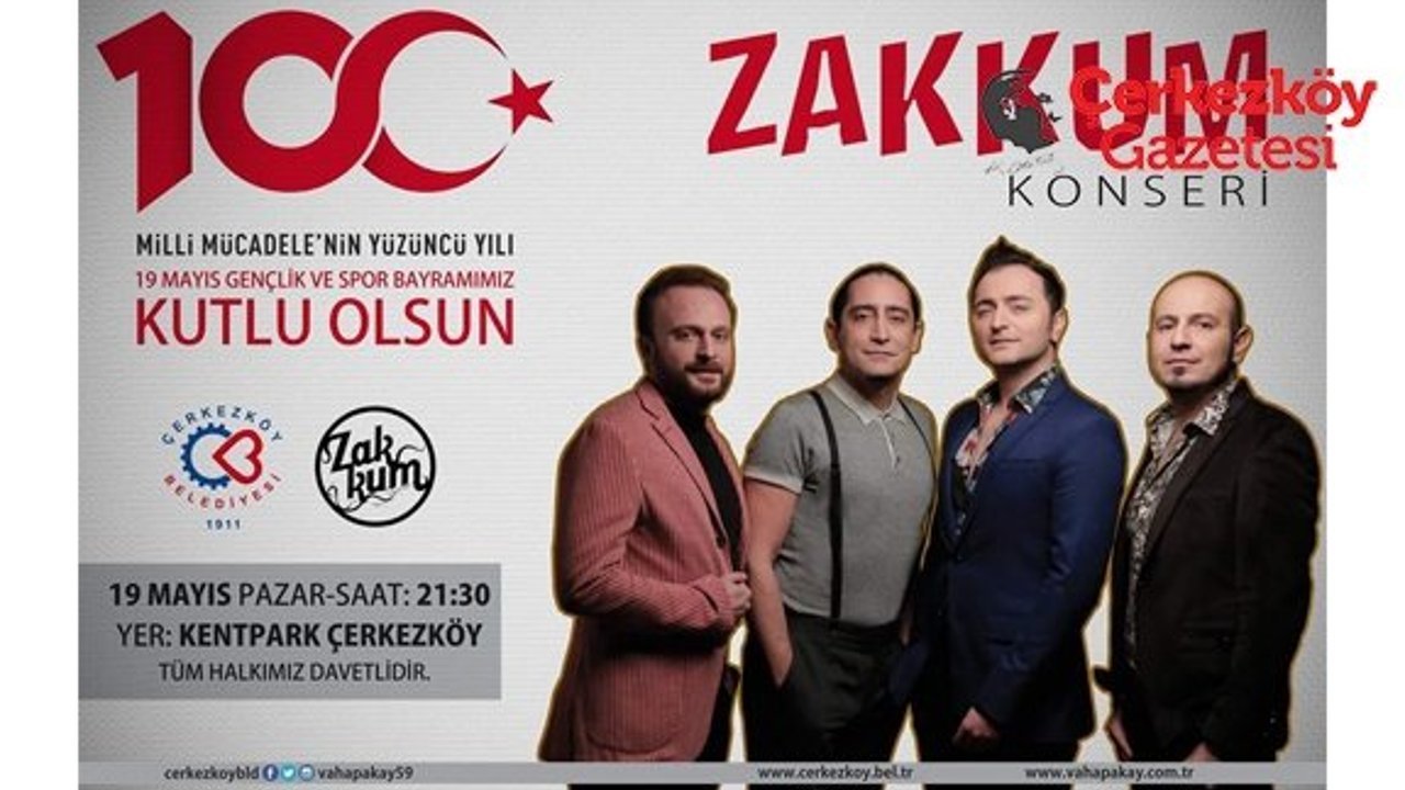 Çerkezköy Belediyesinin düzenlemiş olduğu konser organizasyonu 19 Mayıs Pazar günü saat 21.30’da Çerkezköy Kentpark’ta gerçekleşecek.